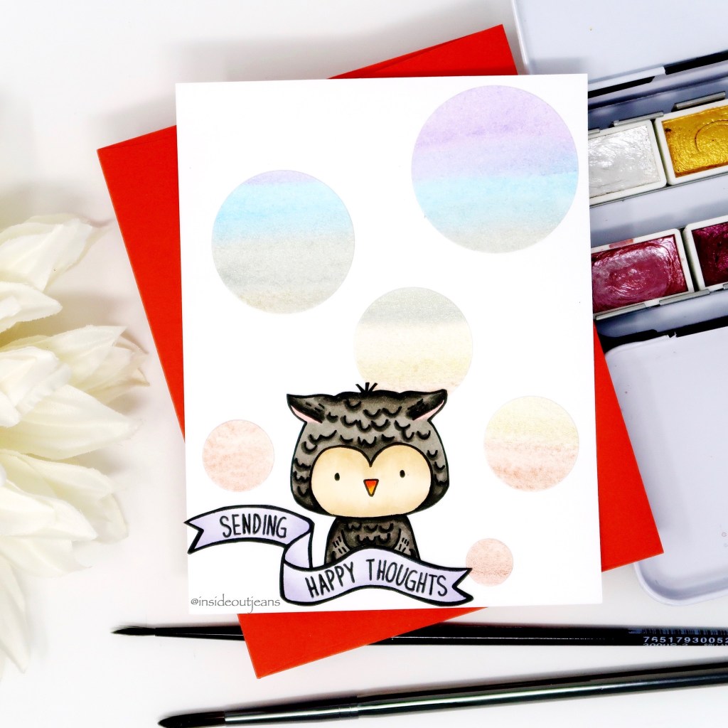 These two cards came from different pieces of cardstock but with the same process. I loosely colored the watercolor panel in rainbow colors.