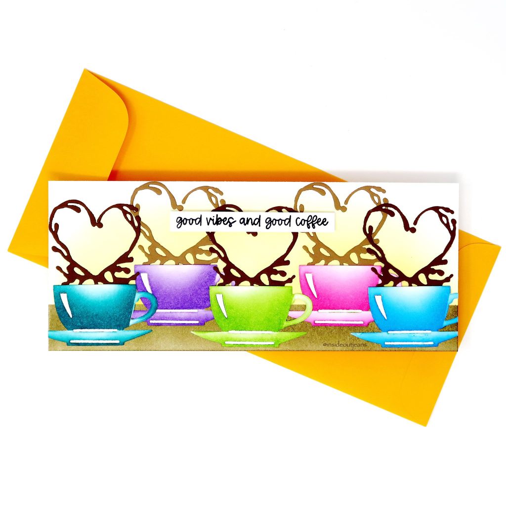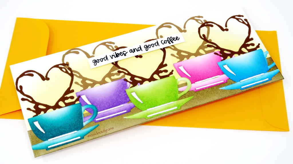 Today, I focused using one of the add on dies called Coffee Cup. It’s such a simple die but can be such a fun one as I used it for a bright and colorful, rainbow card.