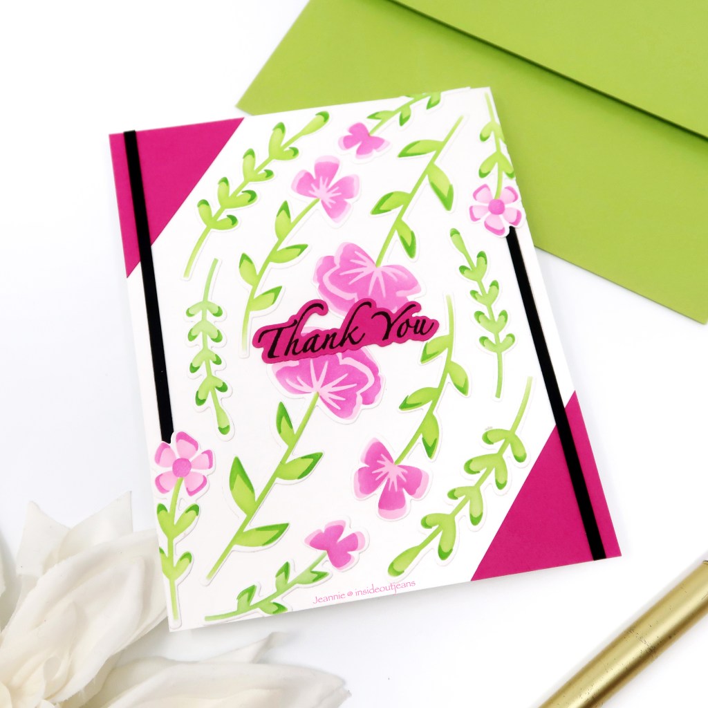 To be honest, I usually don’t care for many card kits because they usually come with a bunch of extra items that I won’t end up using. This exclusive LDRS Creative bundle from Scrapbook.com is a right up my alley because it only has the stamp set, coordinating dies and stencils. I also love that the florals in this stamp set and dies are one piece so you can stamp them all at once and die cut them all at once. It makes things so easy!