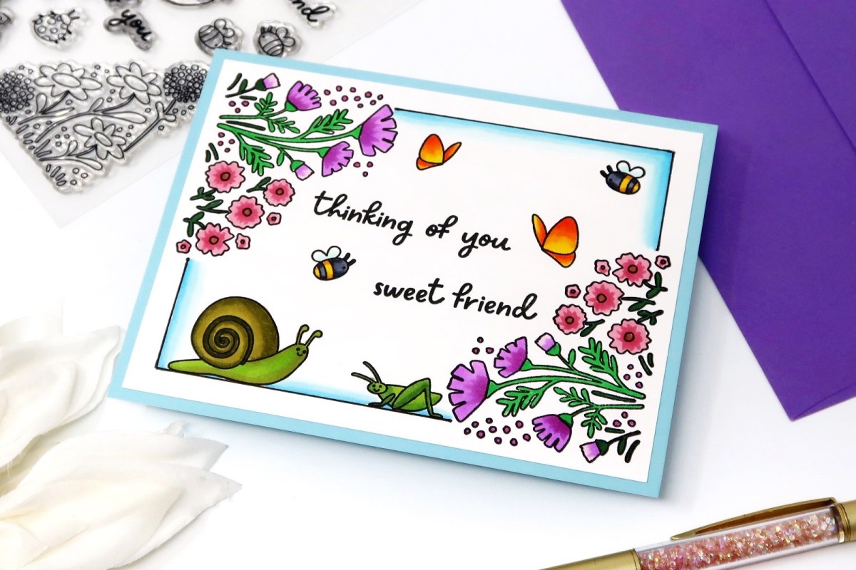 I know I tend to do a lot of masking on my cards but sometimes, you have a set that works well with just straight stamping for a scene. I do love the style of these images and I used the florals as accents to the corners of the cards.