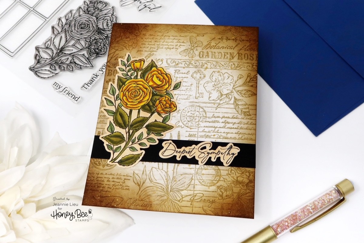 Pattern paper works well as a base and then you can add to them to create the look you want. I did that here with a piece from the Textiles & Textures Vintage paper pack and this card really came to life!