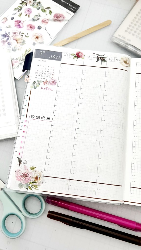 I’m starting to really fall in love with these transfer stickers — they are so thin and they are easy to apply making a planner spread so quick and easy. I actually love pulling up the transparent sheet to revealed that transferred image. I, especially, love these florals.