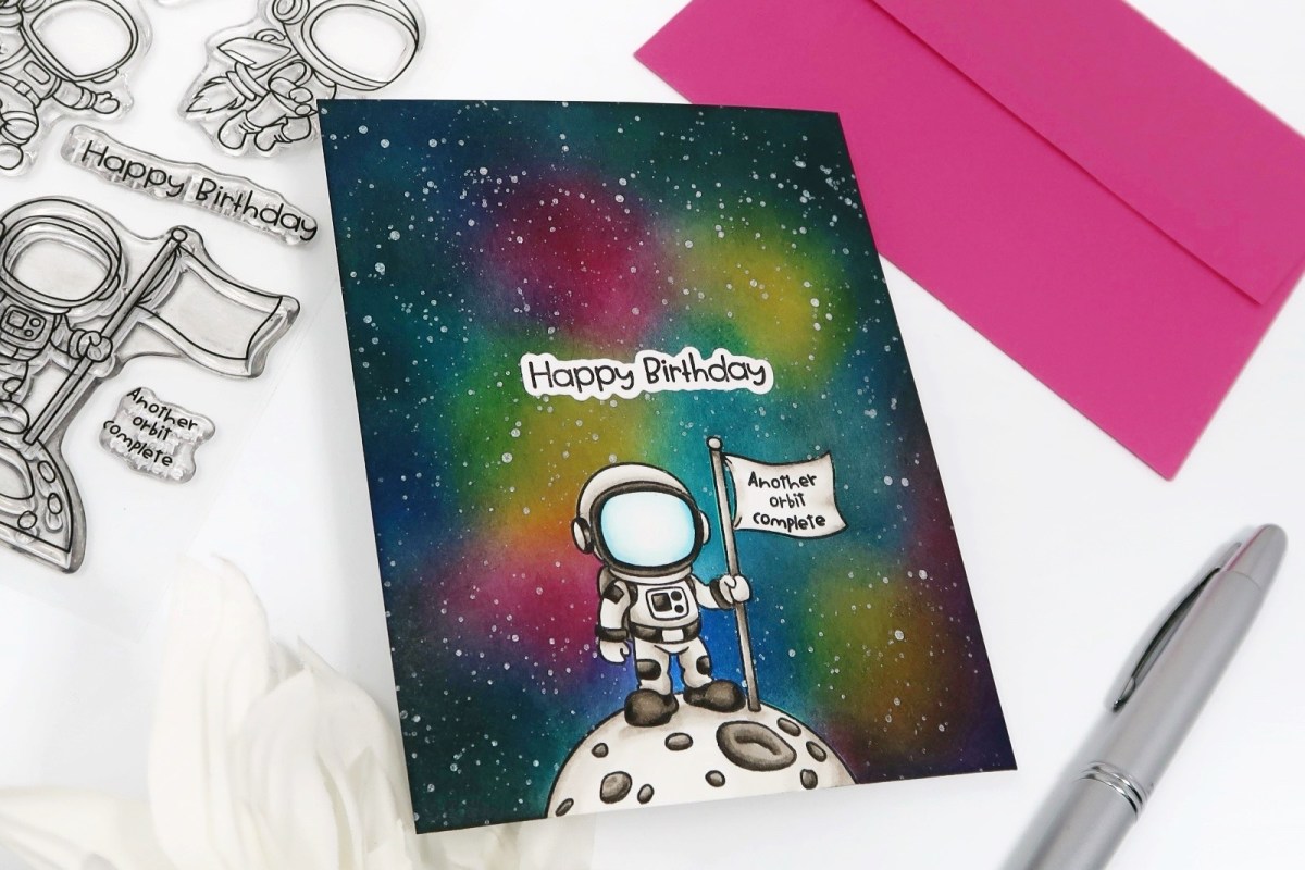 I love ink blending skies — it’s because you can make it look so messy but it’ll all come together when you add a bit of white splatter.