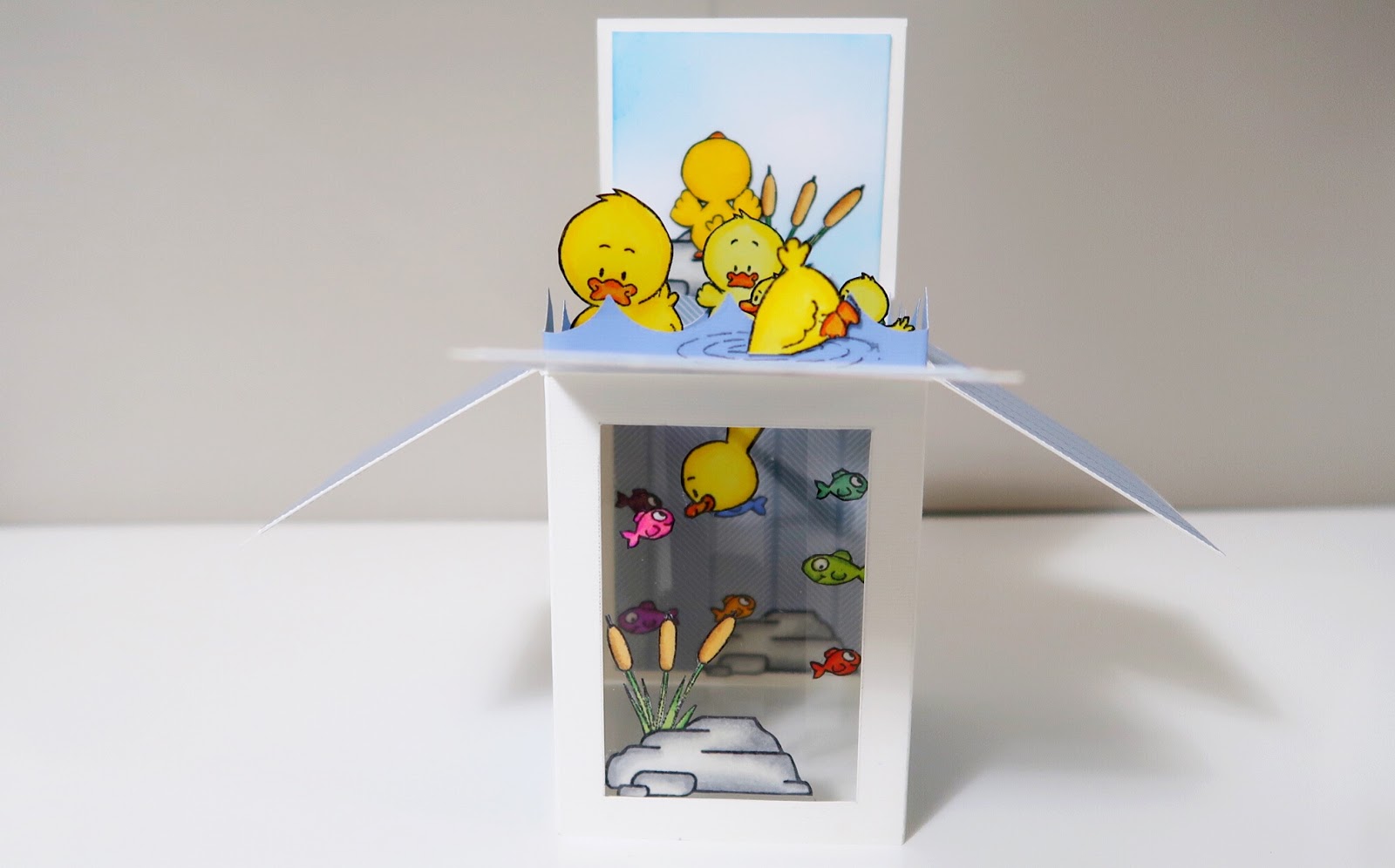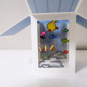 I stamped out a bunch of the sea creatures, colored them, fussy cut them, and added them to the card. I masked off the top portion to show the sky and also gave myself an area to add the sentiment.
