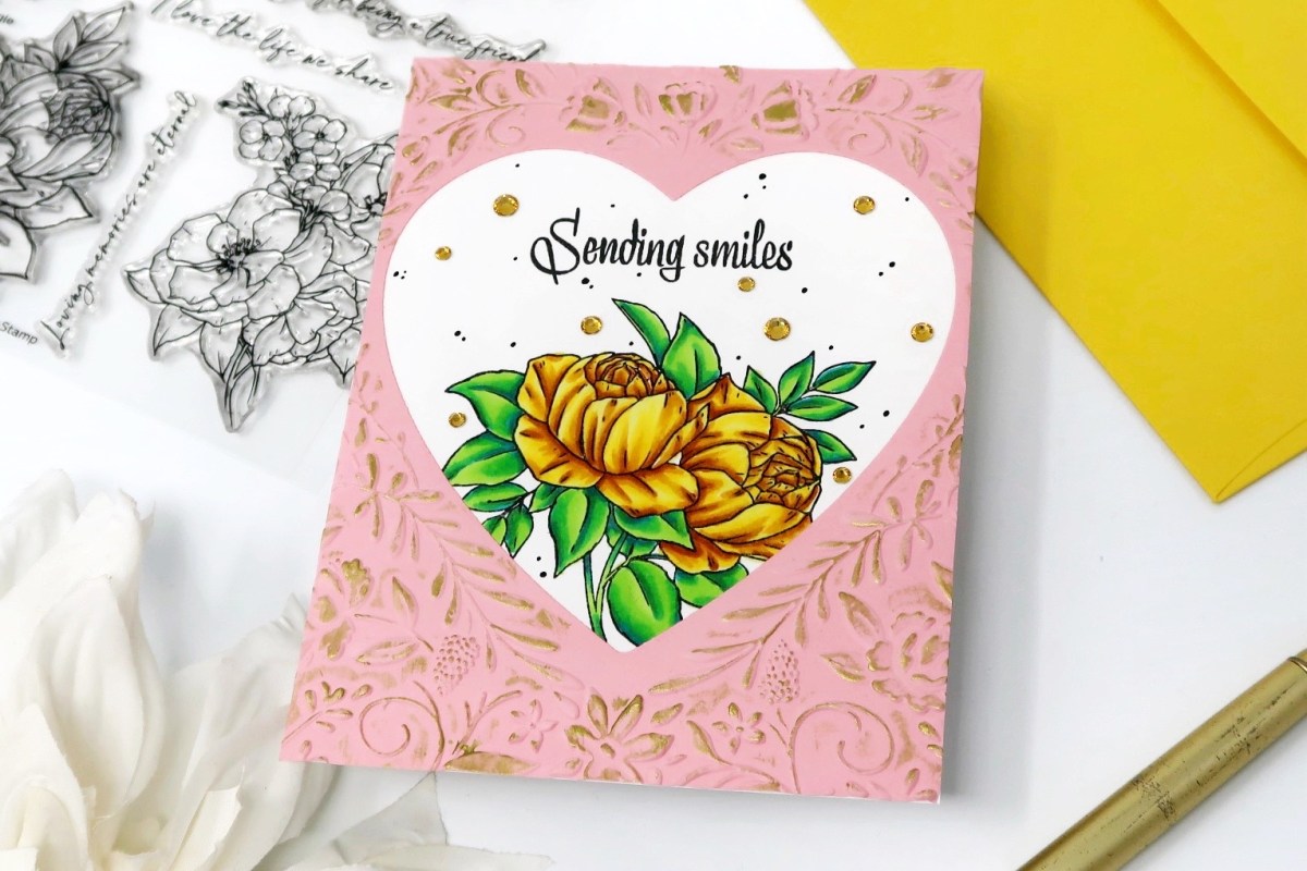 I like trying out new color combos that I don’t tend to use often — I think this worked out well because I had an anchor color. The gold embossing really tied all the pieces together here.