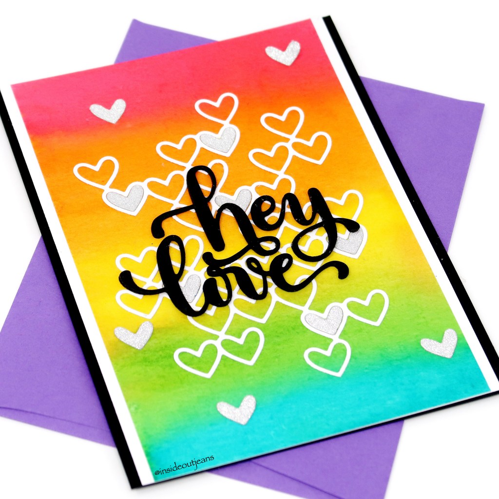 Gotta love a detailed rubber background stamp! I just needed a quick and simple card — my go to is rainbow colors and paired with this stamp — perfection!