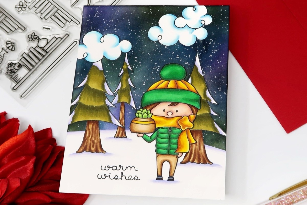 It’s almost a new year and I wanted to create a card that was just cozy. This one was really fun to color in and I mixed in my die cuts with pattern paper to create a little scene card. What are you doing to welcome in the new year?