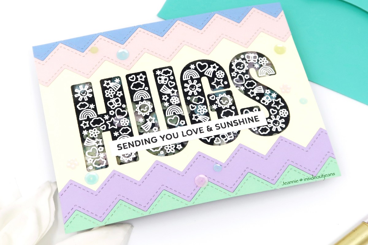 I have a ton of embellishments and honestly, I need to use them more for shaker cards. It’s usually pretty easy to create an image, use one of these pockets, add embellishments and add something right in front.